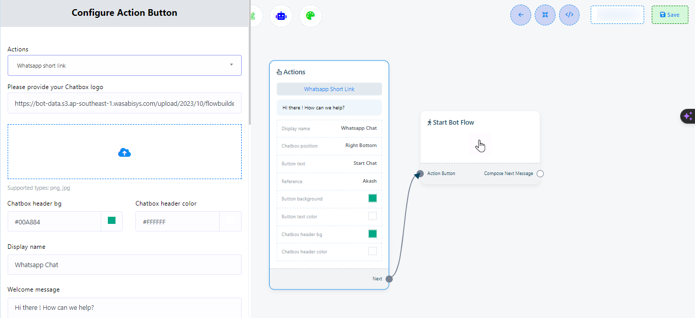 - Click on the `Save` button to preserve the chat widget configurations.