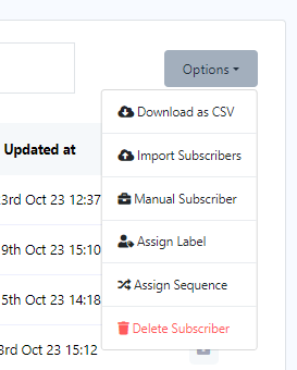 • To import subscribers, select `Import Subscribers` from the options menu.